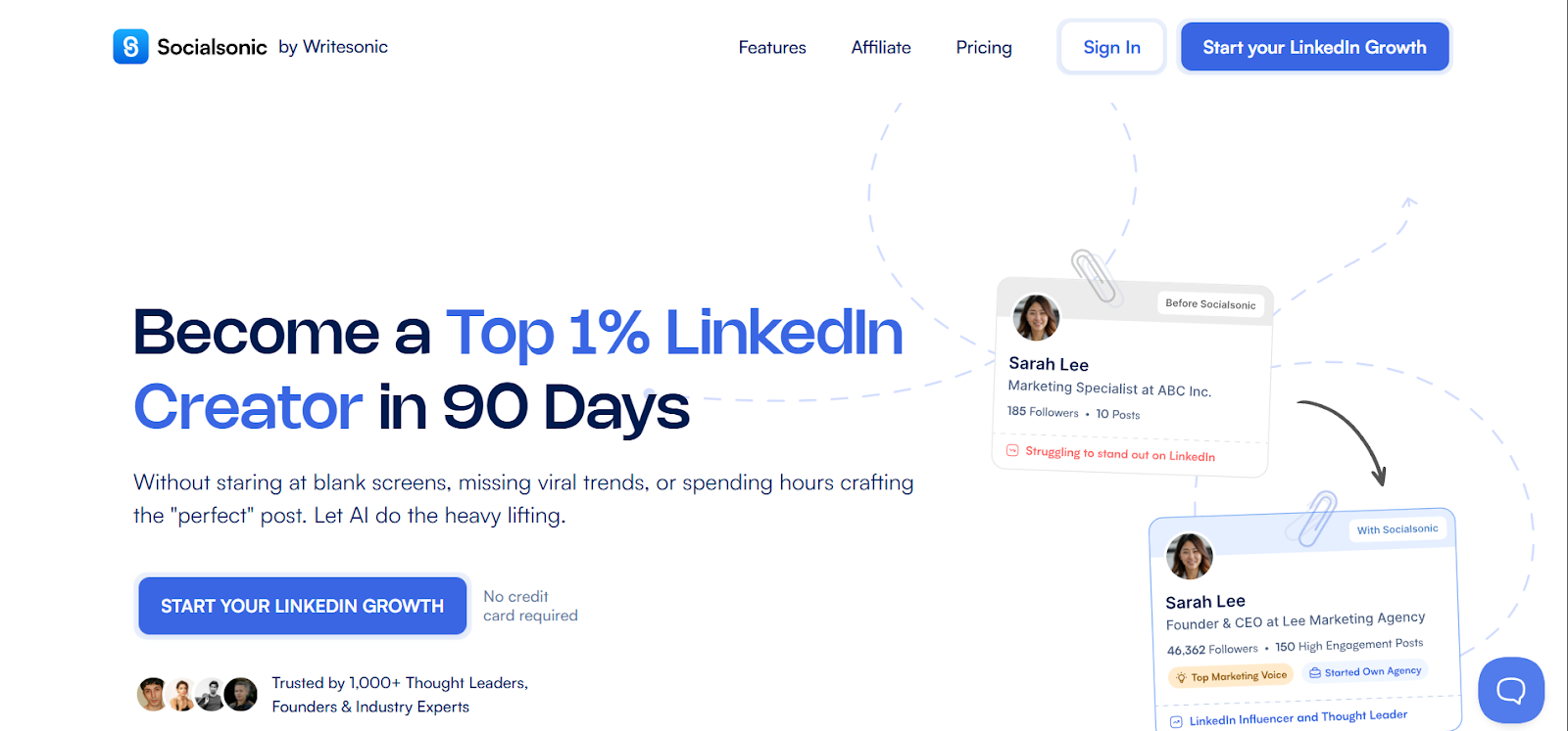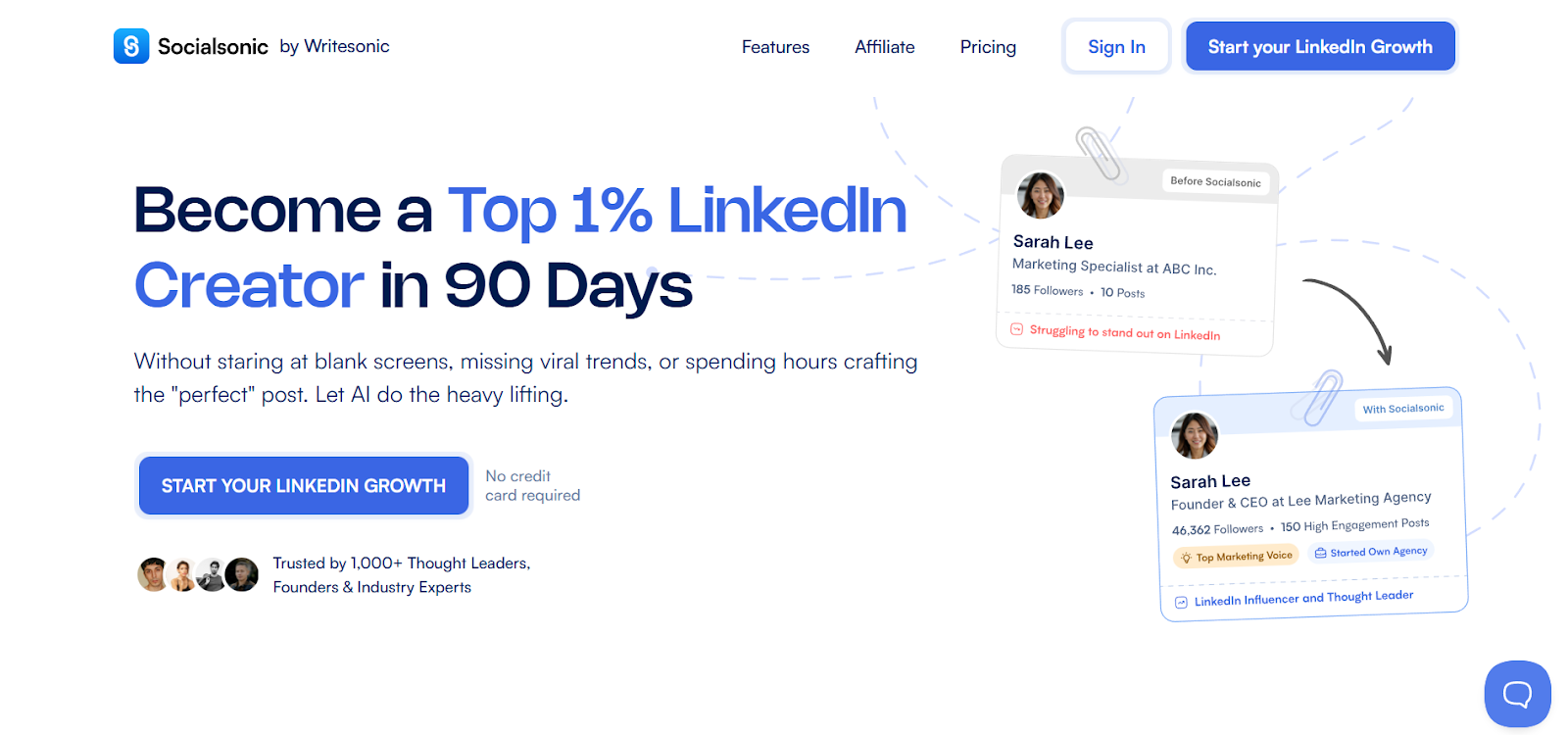 Socialsonic is built for professionals who want to grow on LinkedIn with a clear, goal-driven system. It goes beyond writing by combining trend discovery, content creation, engagement guidance, and performance tracking in one workflow. The platform helps you stay consistent, catch relevant trends early, and turn posts into conversations, leads, and opportunities.