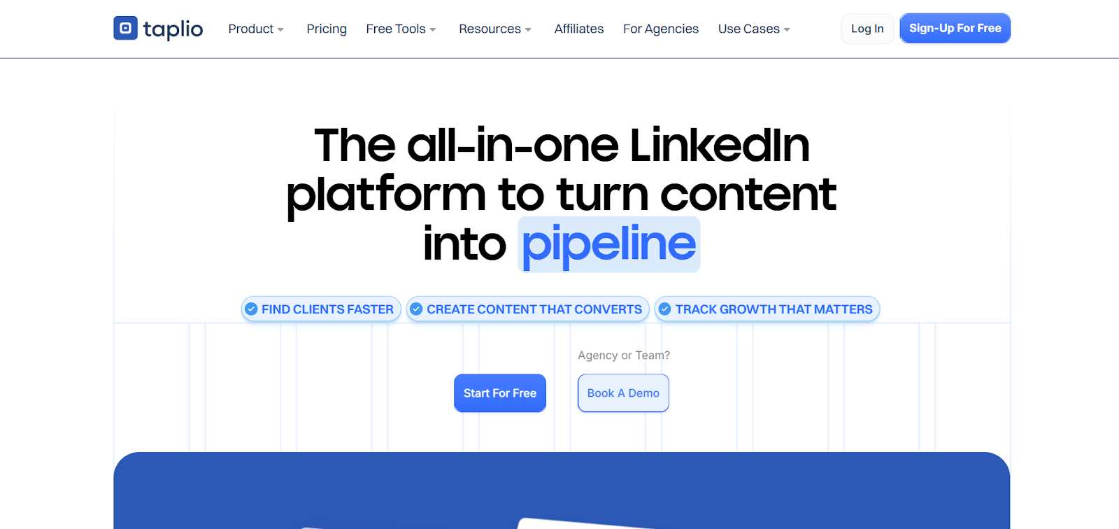 Taplio is an all-in-one Kleo 2.0 alternative for creators and teams who want to turn LinkedIn content into consistent growth and a pipeline. It combines content inspiration, AI writing, scheduling, analytics, and engagement tools in one platform. Instead of focusing only on writing, Taplio supports the full LinkedIn workflow. It’s best suited for users who want structure, scale, and visibility into what’s driving results.